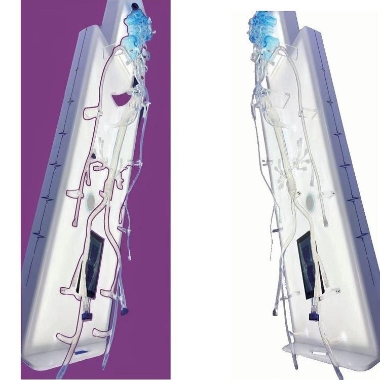 外周血管病变段模型基于临床真实病例数据构建,核心参数涵盖血管内径(2-10mm可调)、斑块分布(钙化/脂质占比30%-70%)、狭窄率(50%-95%阶梯设计)及血流动力学指标(流速误差率<5%)。其采用生物兼容性高分子材料,吻合还原血管壁三层弹性结构与病变特征,内膜厚度波动于0.5-1.2mm,中膜层模拟平滑肌增生状态,外膜抗拉伸强度达12MPa。模型支持介入器械全流程测试:支架径向支撑力(15-25N/mm2)、球囊扩张压(6-18atm)及药物涂层释放效率(72小时缓释监测)等关键性能验证;同时兼容超声多普勒、B-FLOW血流显像3及DSA影像设备,可量化评估斑块稳定性、内皮功能损伤及侧支循环建立效果。临床用途聚焦三大场景:一是介入器械研发验证,如支架输送系统的通过性测试(适配6-8F导管)与植入后抗扭曲性能(弯曲角度>90°);二是术式教学培训,模拟下肢动脉病变的导丝穿越、血栓抽吸操作;三是治疗方案优化,通过血流动力学参数预测再狭窄风险,辅助制定个体化治疗策略。该模型为放射卫生疗器械创新与临床技能提升提供生平台。