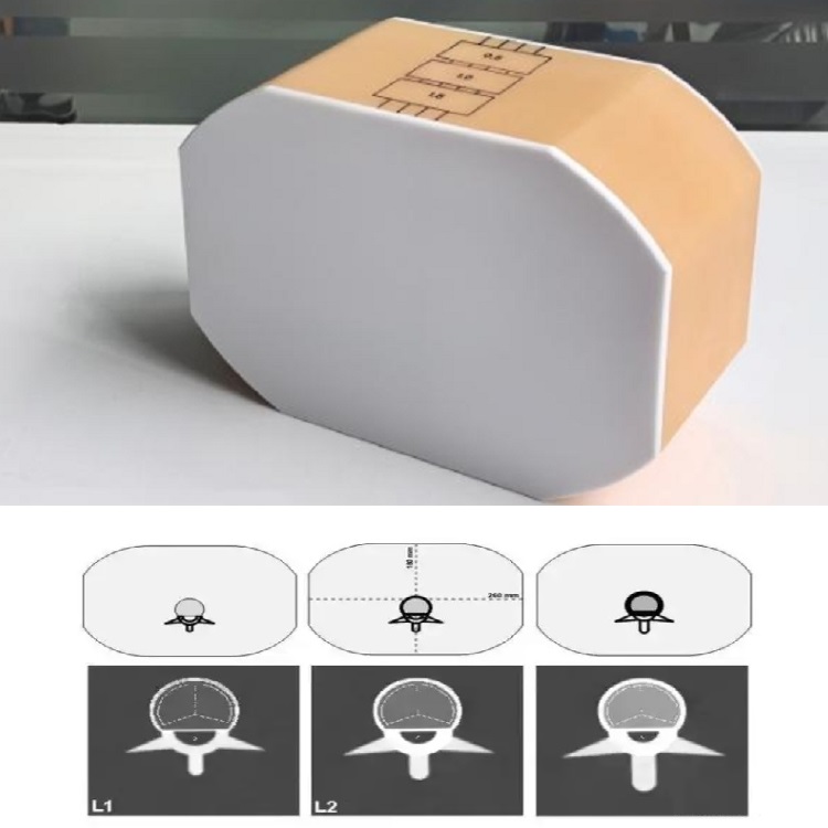 该体模主要用于双能X射线骨(DXA)和定量CT(QCT)系统的吻合校准与性能验证。通过模拟不同骨密度梯度(低至50mgHA/cm3,高至200mgHA/cm3),可评估设备在正位、侧位扫描中的重复性与准确性,确保骨质疏松诊断数据的可靠性,符合YYT0724-2021等行业技术标准。同时,其仿生设计支持多中心研究的设备间一致性比对,机器内精密度CV值低至0.5%-0.52%,机器间精密度误差控制在5%以内,为跨机构数据可比性提供保障。此外,部分腰椎体模扩展应用于临床技能培训,通过模拟真实解剖结构(韧带、椎间盘、脊髓等),支持CT/MR/超声成像下的腰椎穿刺、硬膜外麻醉等介入操作训练,增强放射卫生师手眼协调性与操作手感。