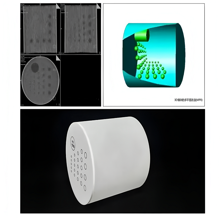 3D低对比度分辨率模体是专为放射影像学影像设备性能评估设计的精密测试工具,采用组织等效塑料材质,典型CT值为35HU(120kV条件下),主体为直径100毫米、长度100毫米的圆柱体结构。其核心由多层球形低对比度测试对象构成,包含直径3毫米、4毫米、5毫米的球体各9个,直径6毫米球体9个,以及直径8毫米球体7个,所有球体对比度吻合控制在背景值的-10HU或-20HU级别,制造公差严格保持在标称值±3%范围内,部分认证型号精度达±1%12613。该模体通过模拟人体组织衰减特性,为CT、数字X射线等3D成像系统提供关键的低对比度分辨率测试场景,用户可通过单次螺旋扫描同步获取轴向图像与冠状重建数据,全面评估设备在x/y平面及轴向上的成像能力。其主要用途包括优化管电流、准直宽度、螺距及图像重建算法参数,确保临床影像能清晰辨识微小病灶(如早期或血管病变);同时量化扫描仪对低密度差异组织的分辨极限,为设备质量控制、定期性能验证及采购评估提供客观依据。其模块化设计兼容标准胸部模体与椭圆形模体接口,支持头部与体部扫描条件的HU比例模拟,满足多场景检测需求。